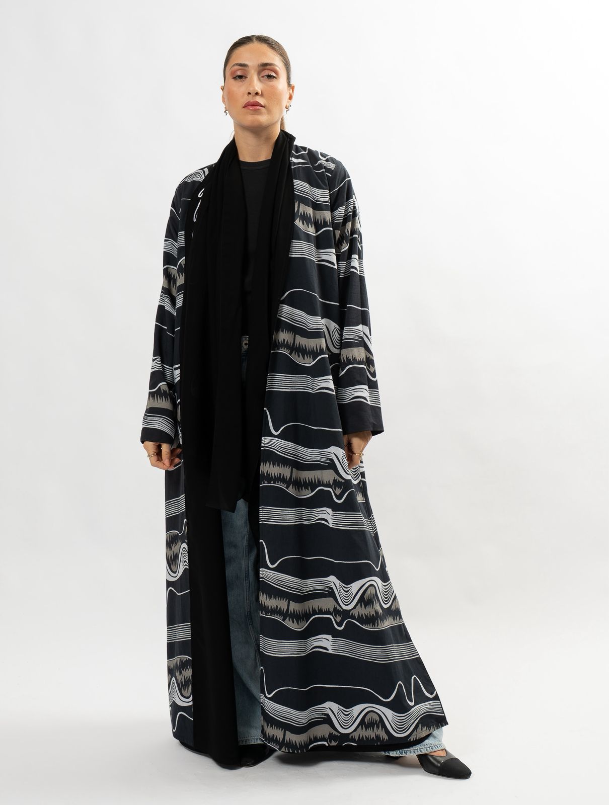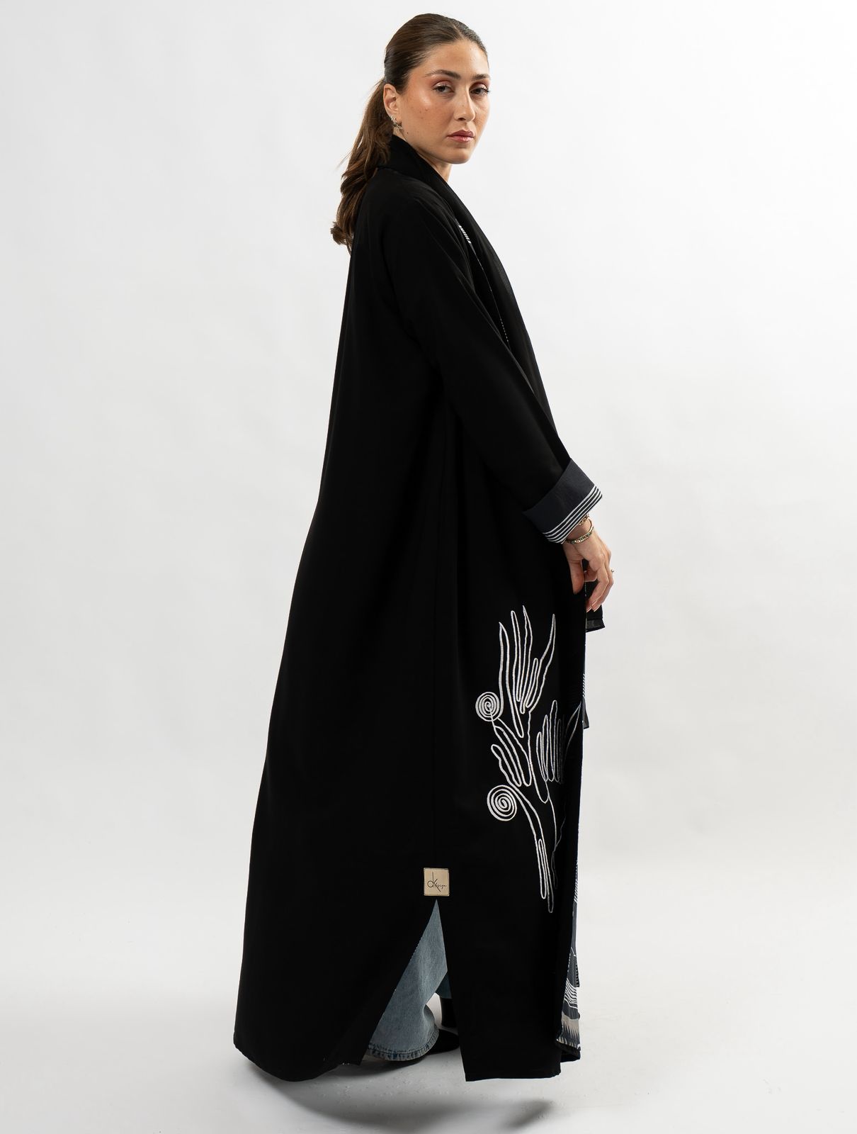 Double Daise reversible abaya featuring a double-faced design for versatile styling options.