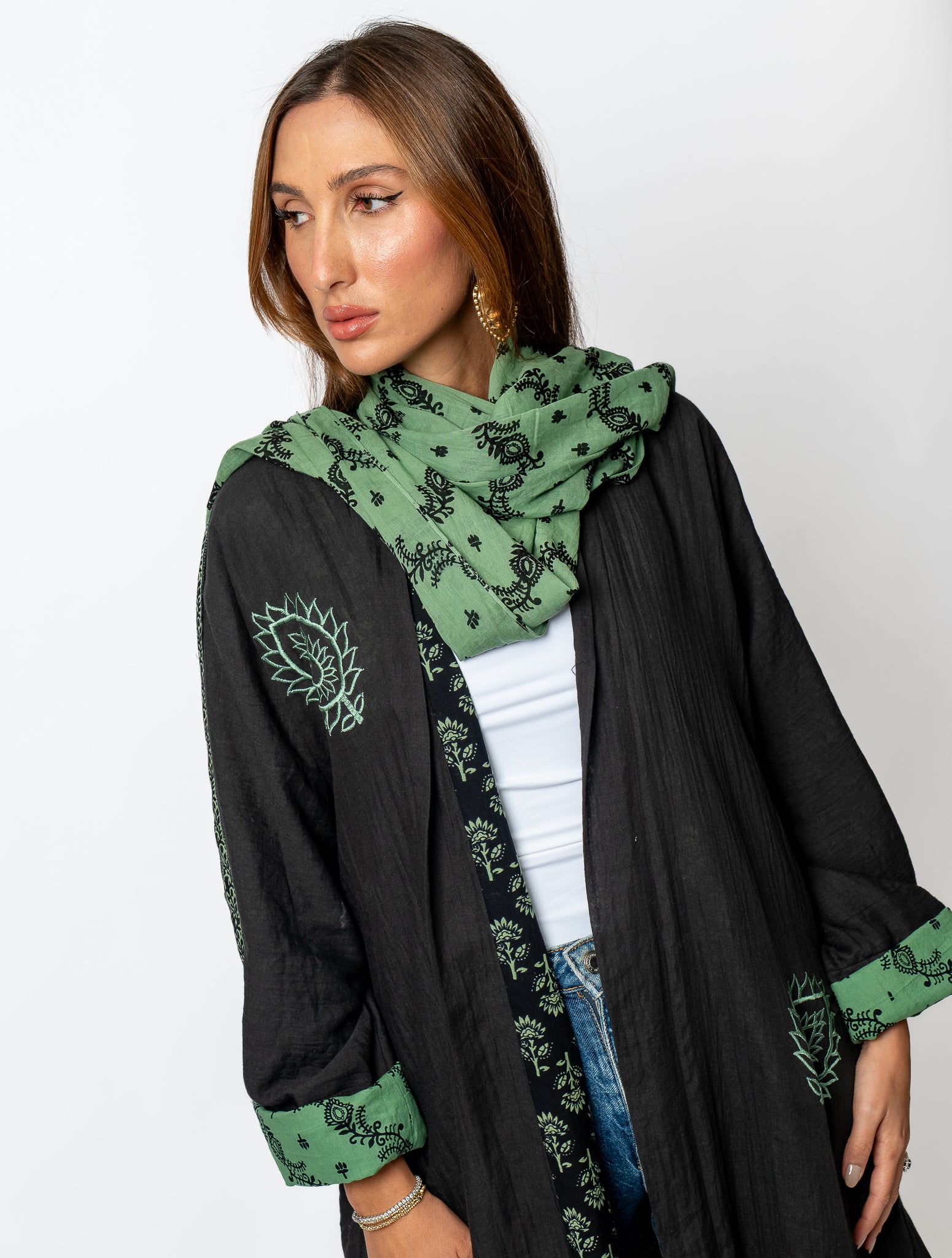 Cotton double-faced fabric that delivers versatility and comfort in one piece. Perfect for layering or wearing solo, this dual-textured material offers style flexibility for any occasion.