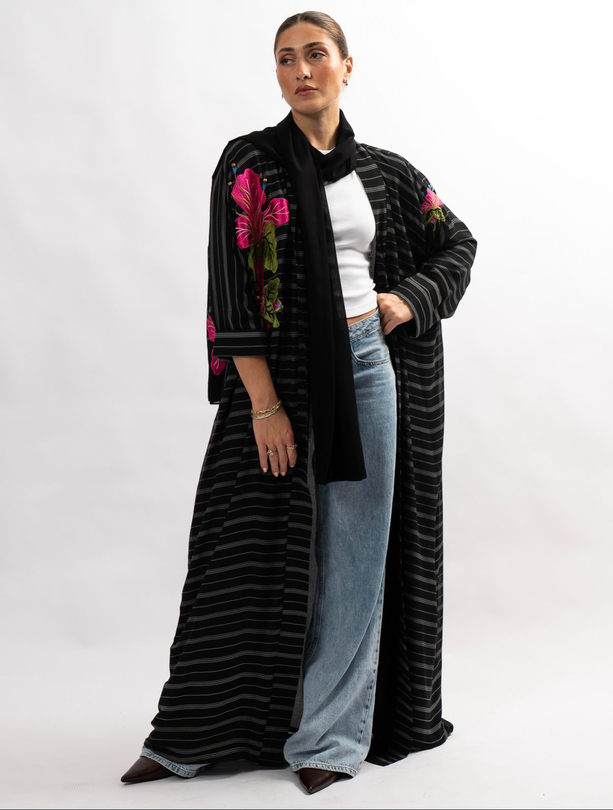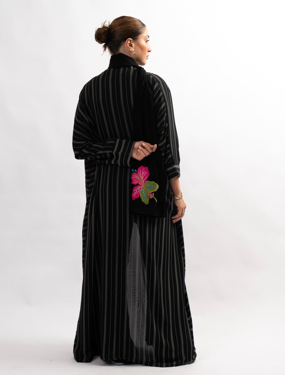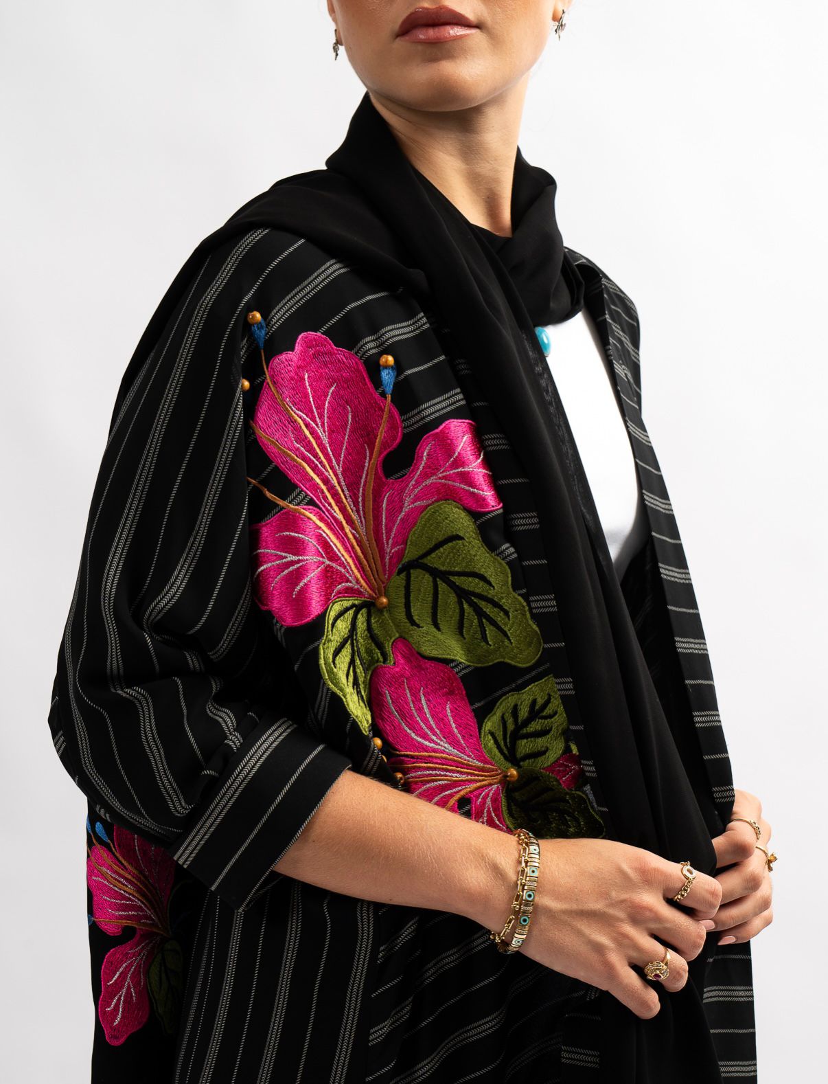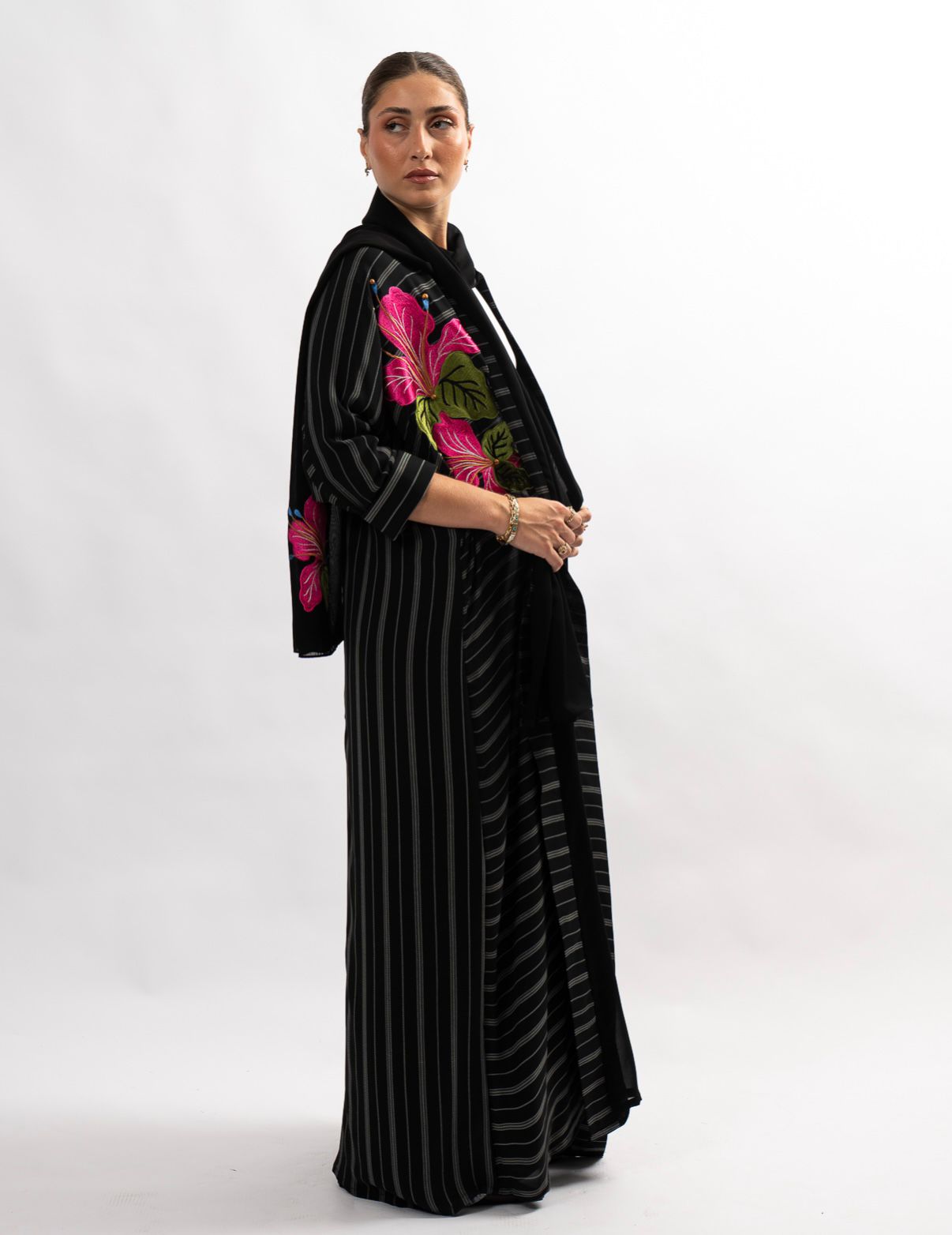 The Fuchsia Tulip features a sophisticated design crafted from high-quality crepe chiffon, offering a delicate texture and graceful drape ideal for elegant occasions.