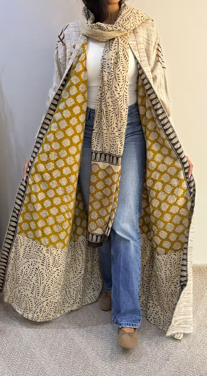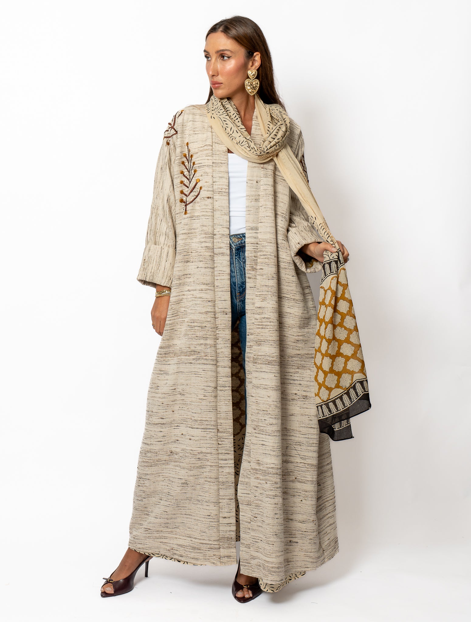 Crafted from premium winter linen with a soft cotton lining, this piece combines natural breathability with refined comfort. The thoughtful construction ensures durability while maintaining an elegant drape, making it an essential addition to your seasonal wardrobe. Perfect for those who appreciate quality textiles and timeless design.