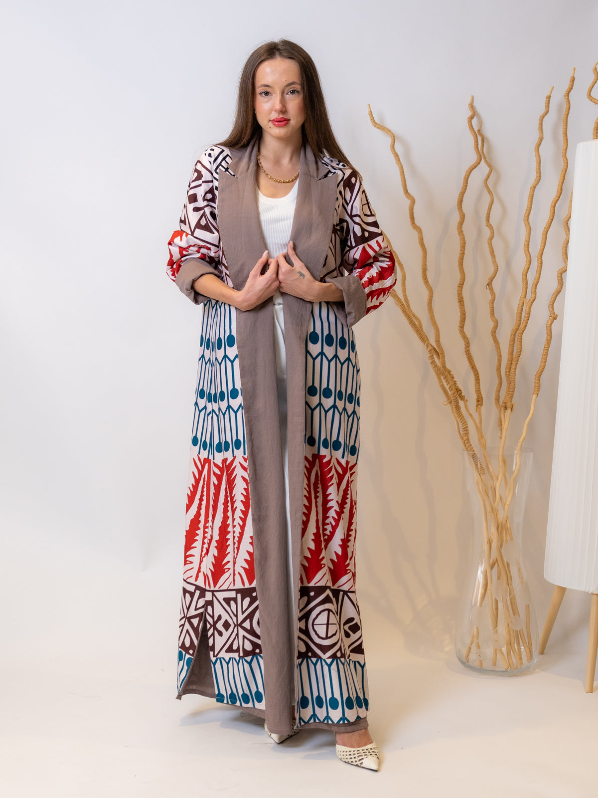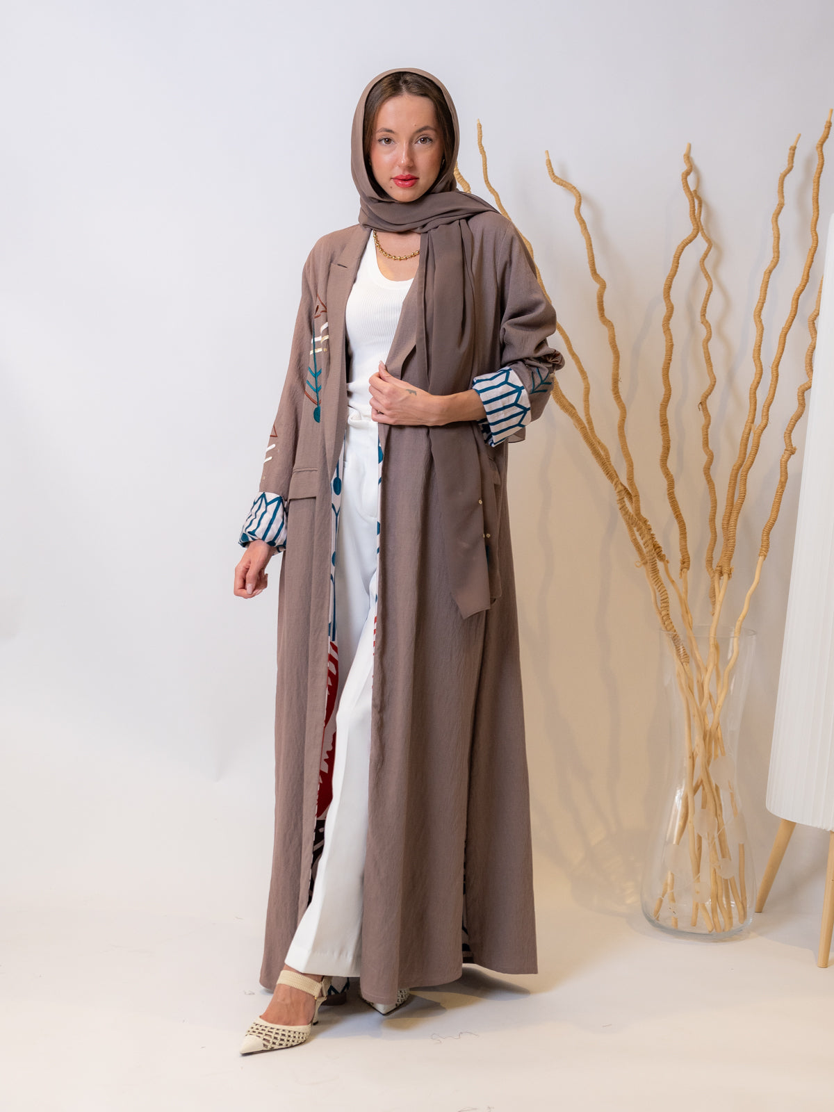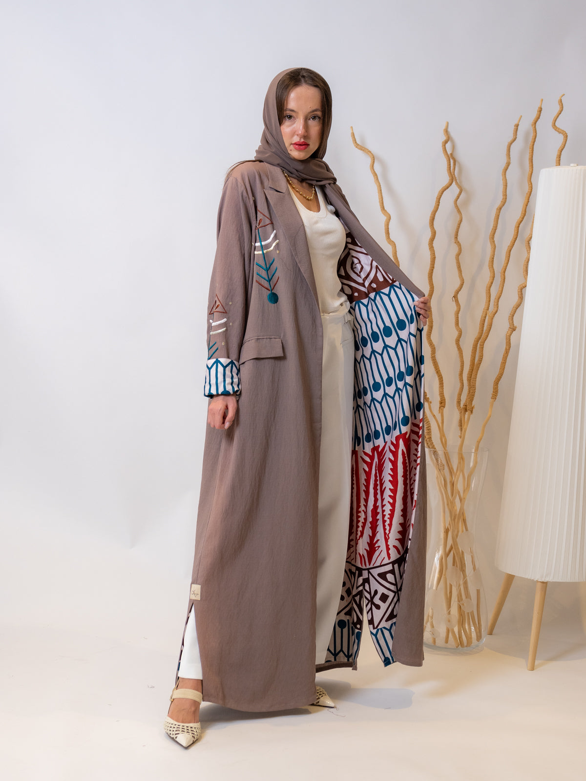 Design: Rona Abaya: Modern geometric pattern + versatile brown color for any occasion.