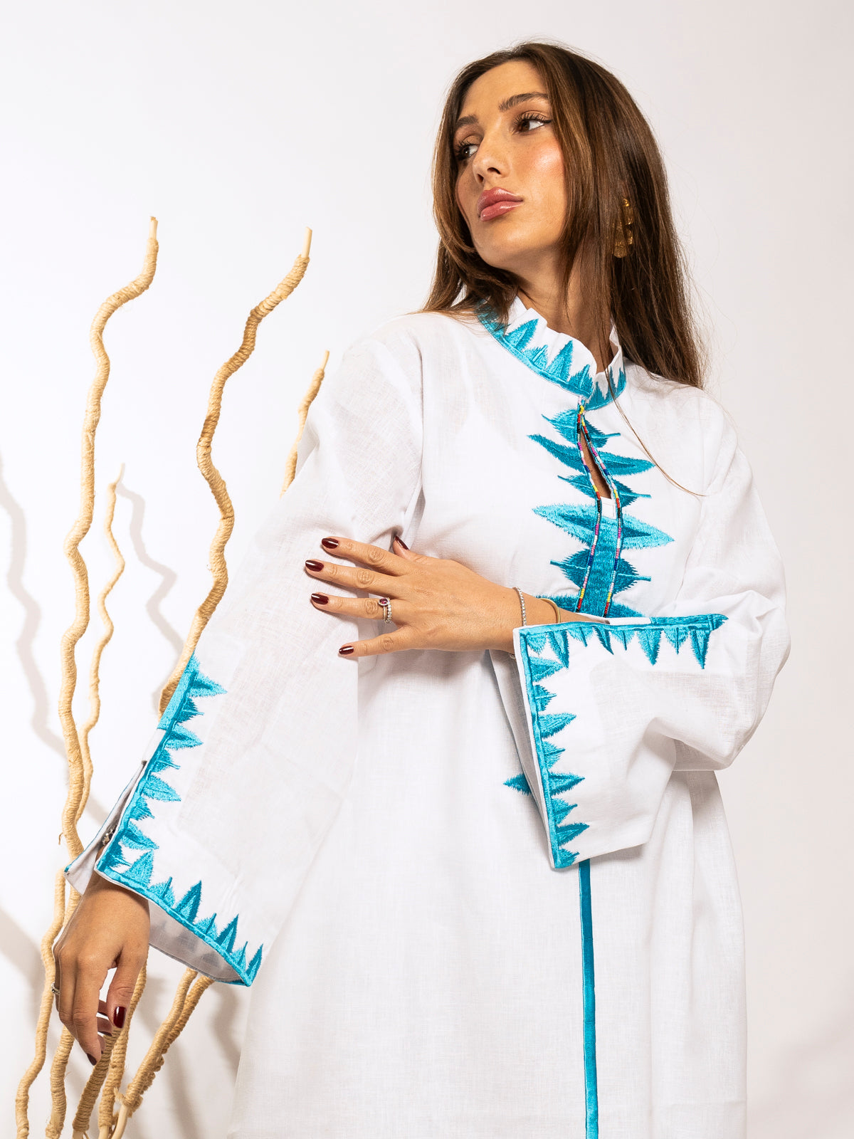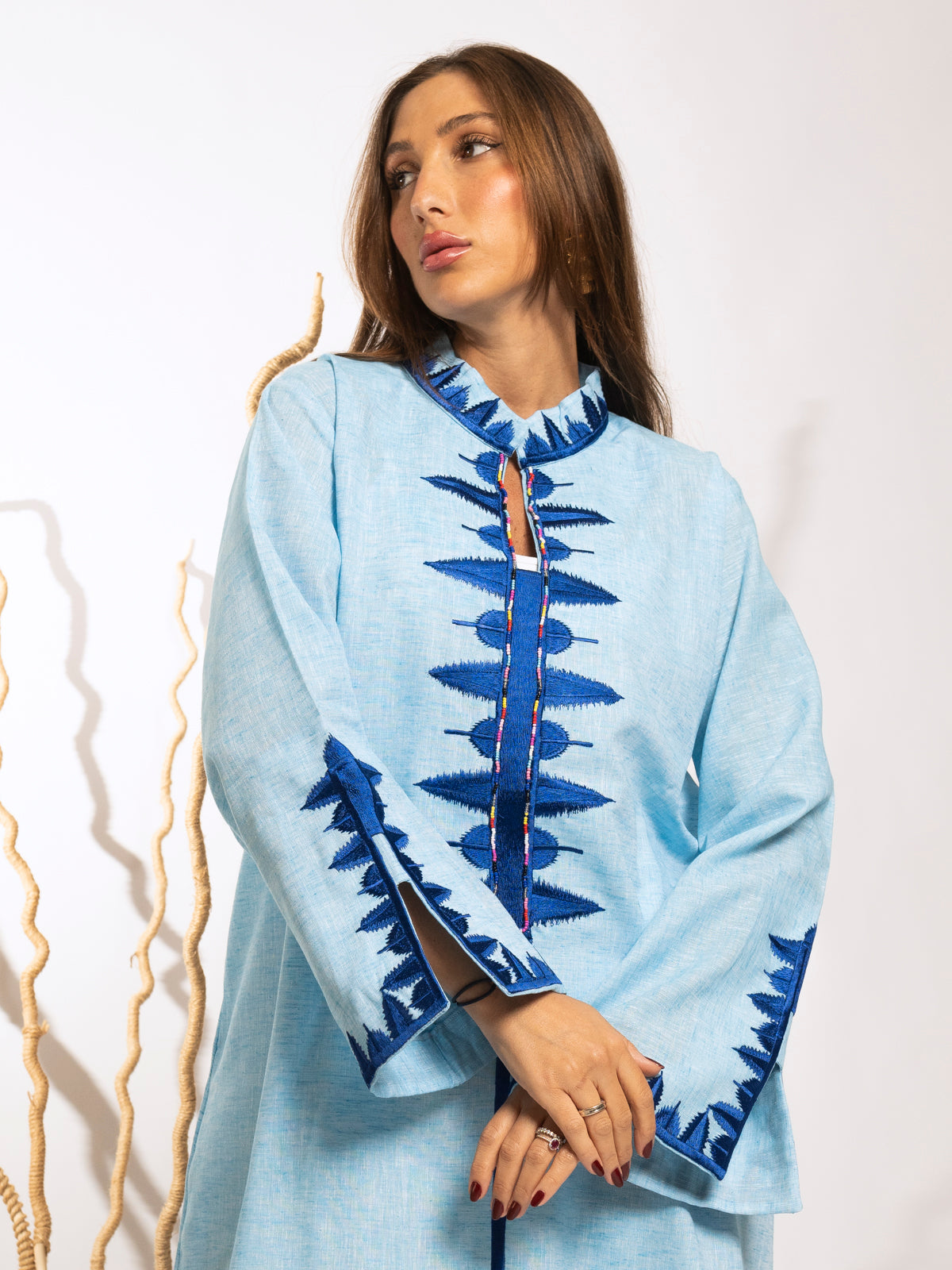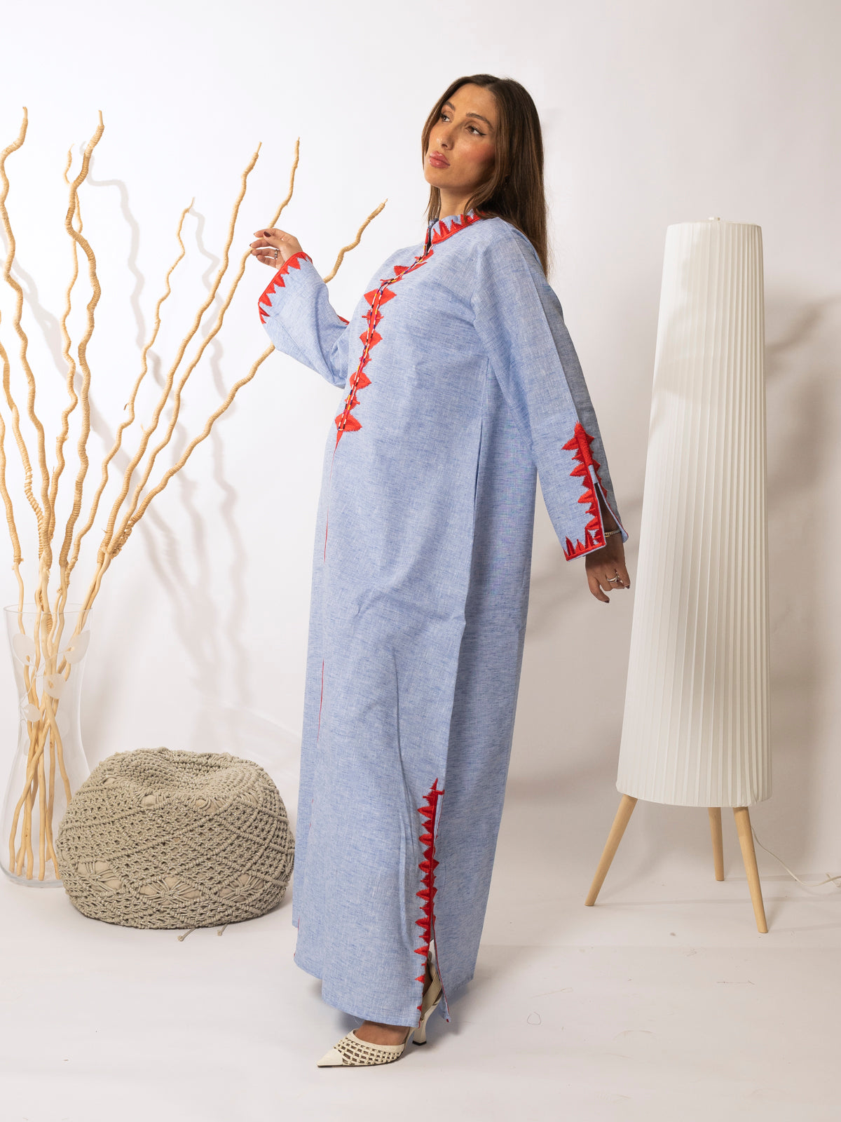 Comfort and style come together in our Slightly Moroccan Thobe. Made with breathable linen fabric, it's the perfect choice for Ramadan and beyond.