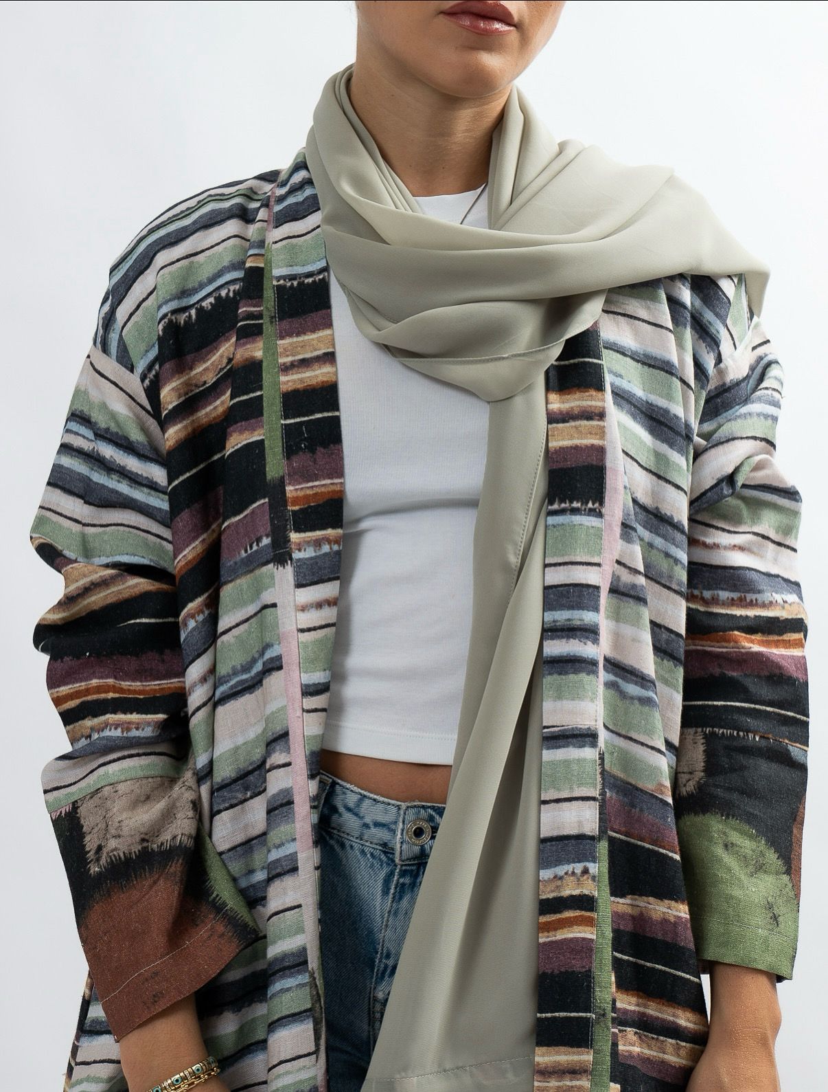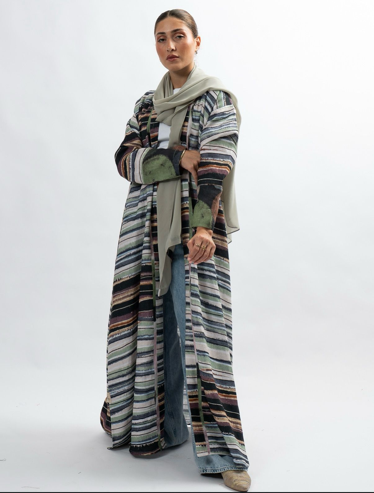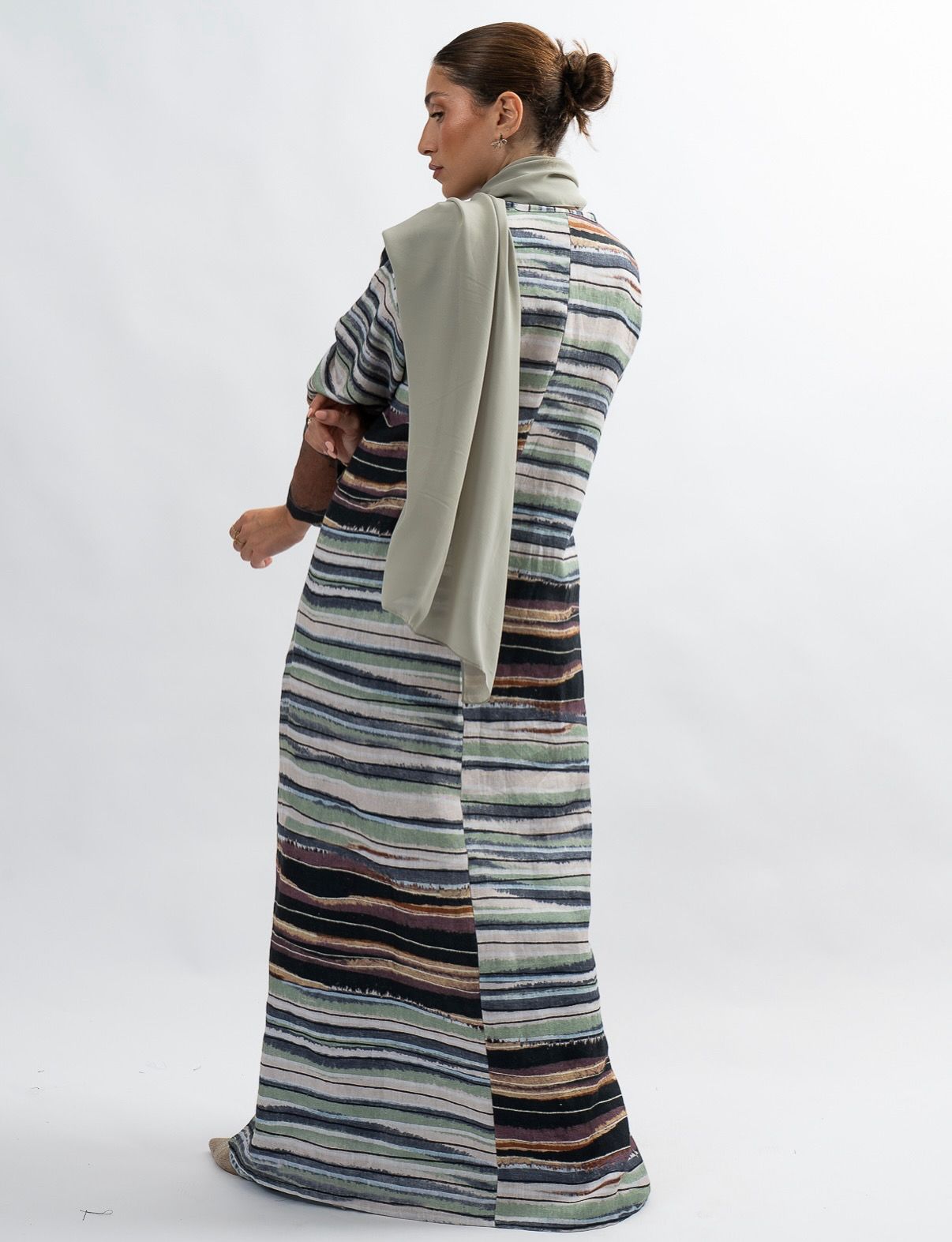 Crafted from a linen and cotton blend, Striped In offers a sophisticated and breathable fabric combination.