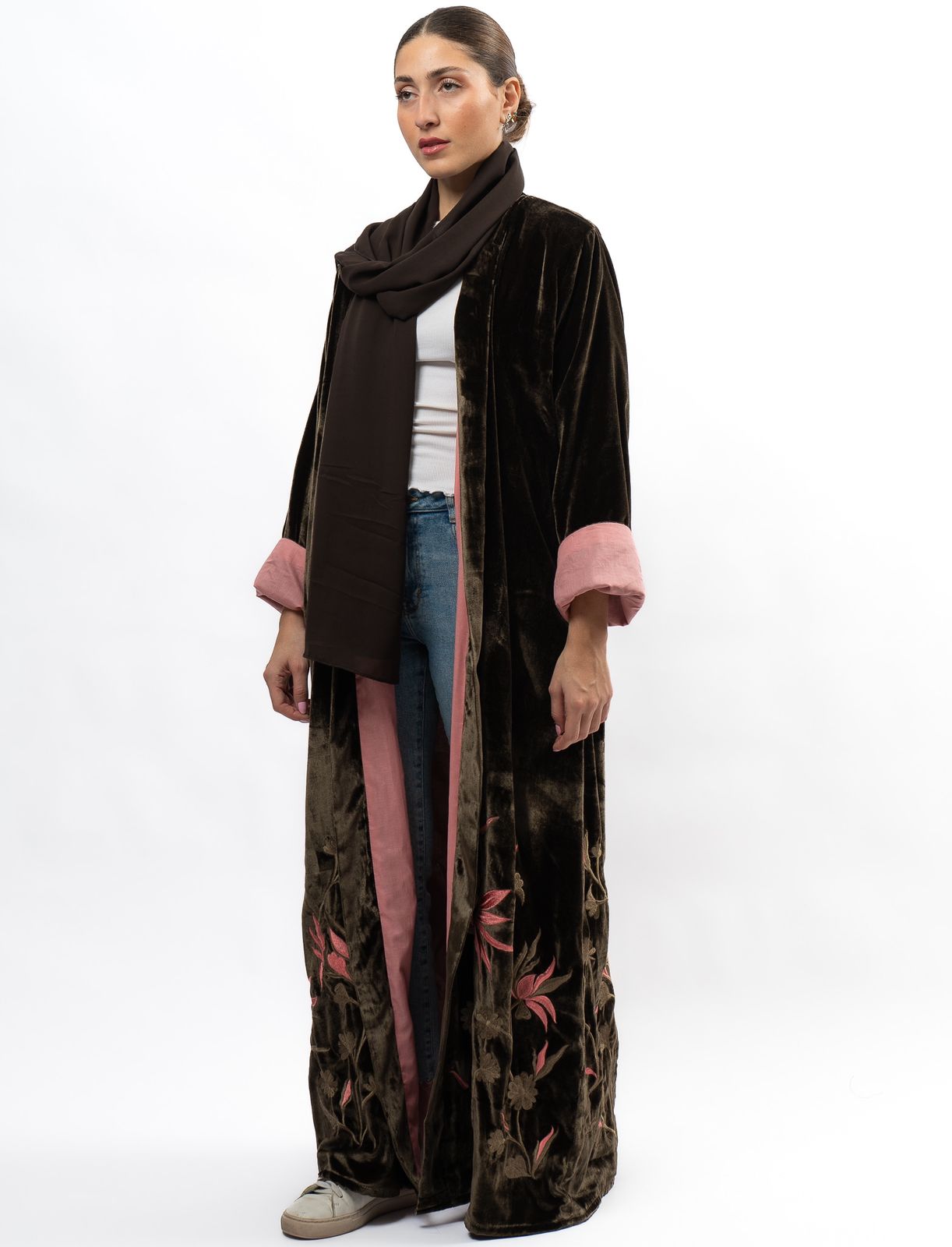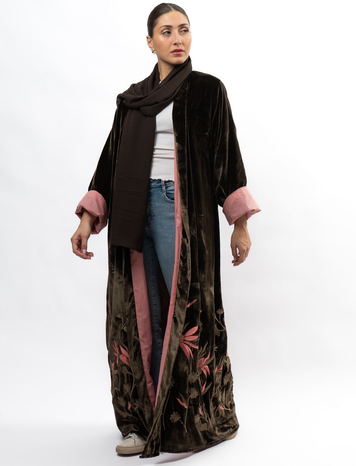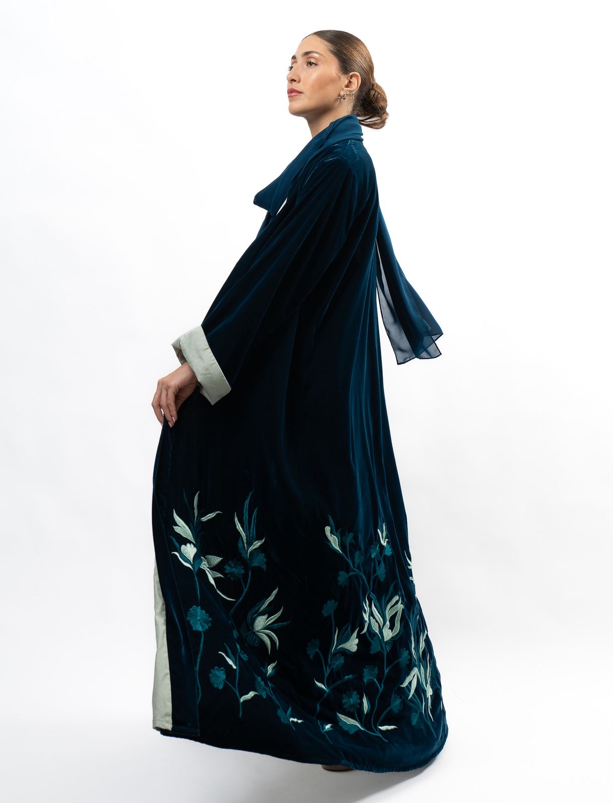 Introducing the Velvet Forest Abaya, a must-have garment for any fashion-forward individual looking to elevate their wardrobe with elegance and sophistication. This exquisite piece boasts a rich velvet fabric, embodying the beauty and enchantment of a mystical forest. Elevate your style and embrace the luxurious feel of the Velvet Forest Abaya.