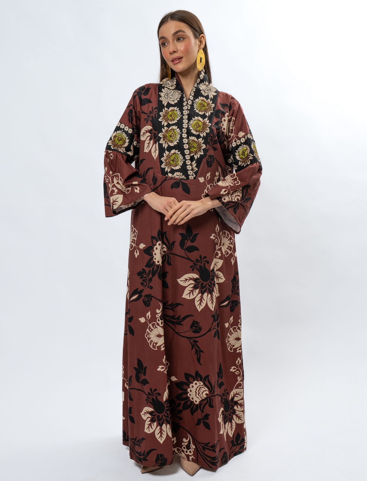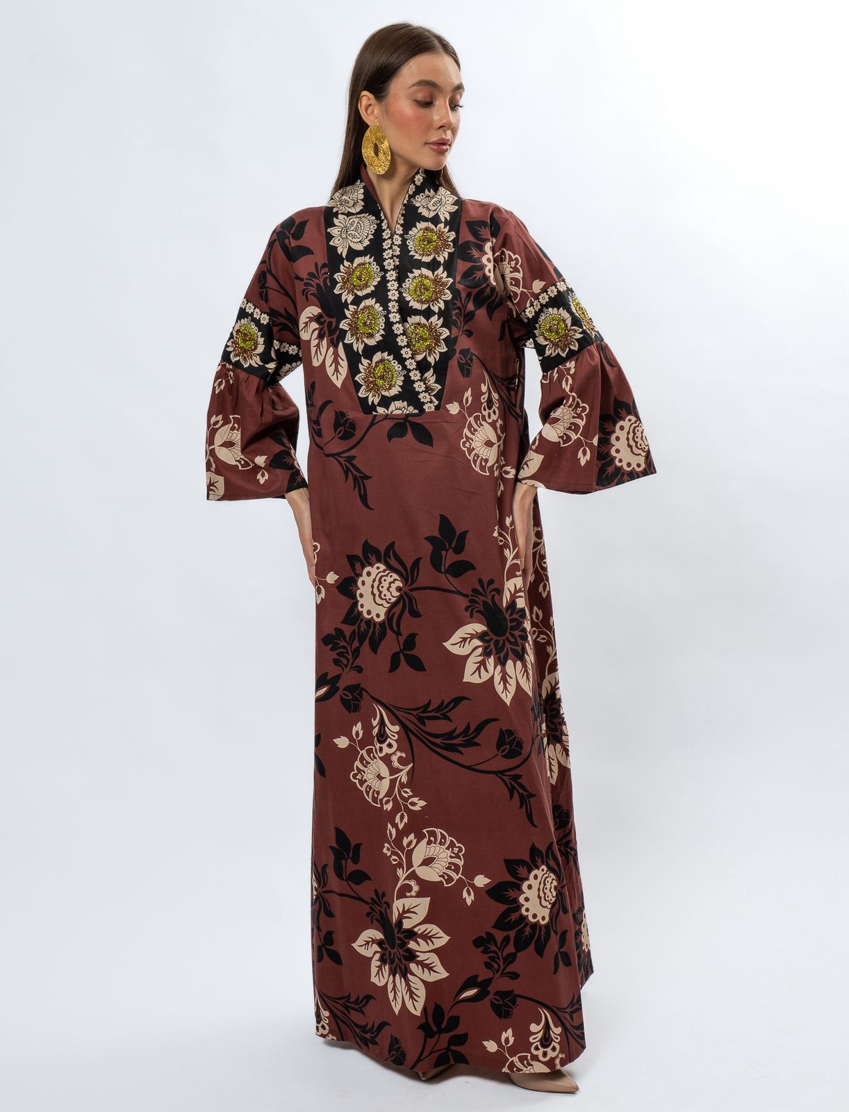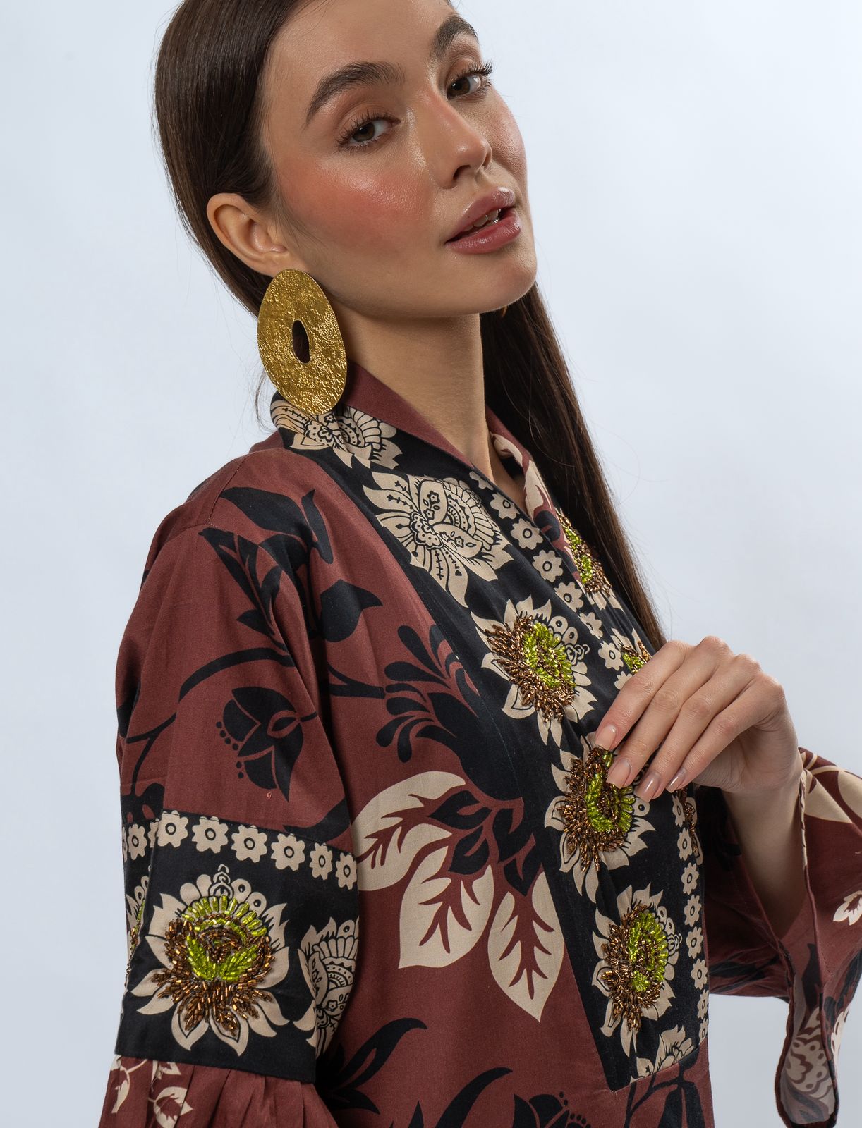 Crafted from premium cotton, this brown floral piece combines natural fiber comfort with timeless aesthetic appeal. The earthy brown tone paired with delicate floral detailing creates a versatile garment suitable for various occasions. Cotton's breathable properties ensure all-day wearability, while the thoughtful design reflects quality craftsmanship and attention to detail.
